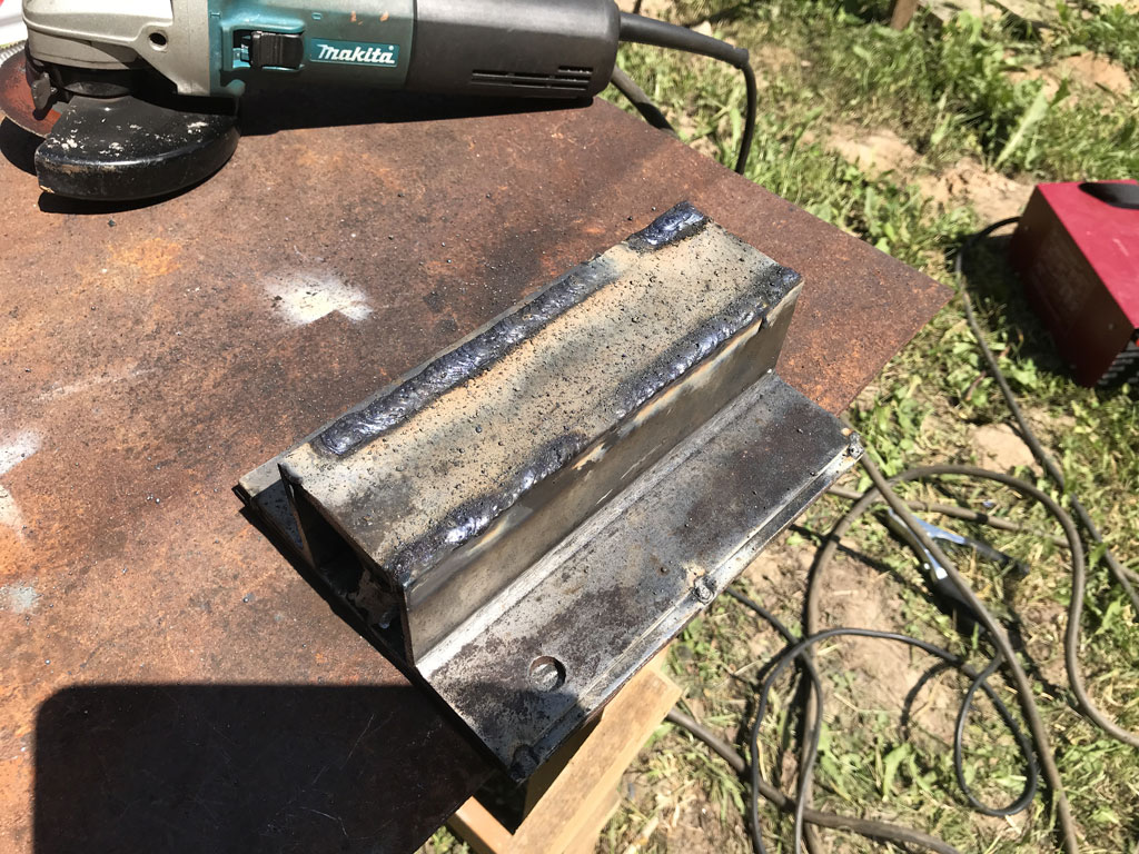 Поскольку щель между пластиной и уголками получилась достаточно большой, то после приваривания пластины сверху, я срезал прихватки и проварил эту же пластину уже изнутри.