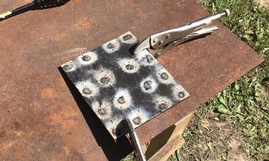 Я решил отрезать такую же и насверлив в одной из пластин равномерно отверстий диаметром 8мм точечными сварками скрепил эти две пластины между собой.