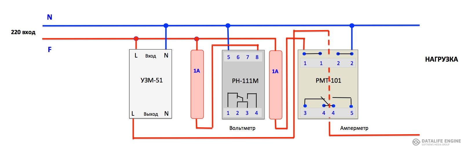 Подключение УЗМ-51, а также РН-111М в качестве вольтметра и РМТ-101 в качества амперметра