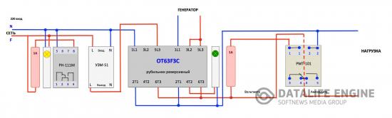 Лично мне интересно знать - приходит ли напряжение от столба в дом и работает ли генератор/ИБП при подключении нагрузки ко второму источнику.