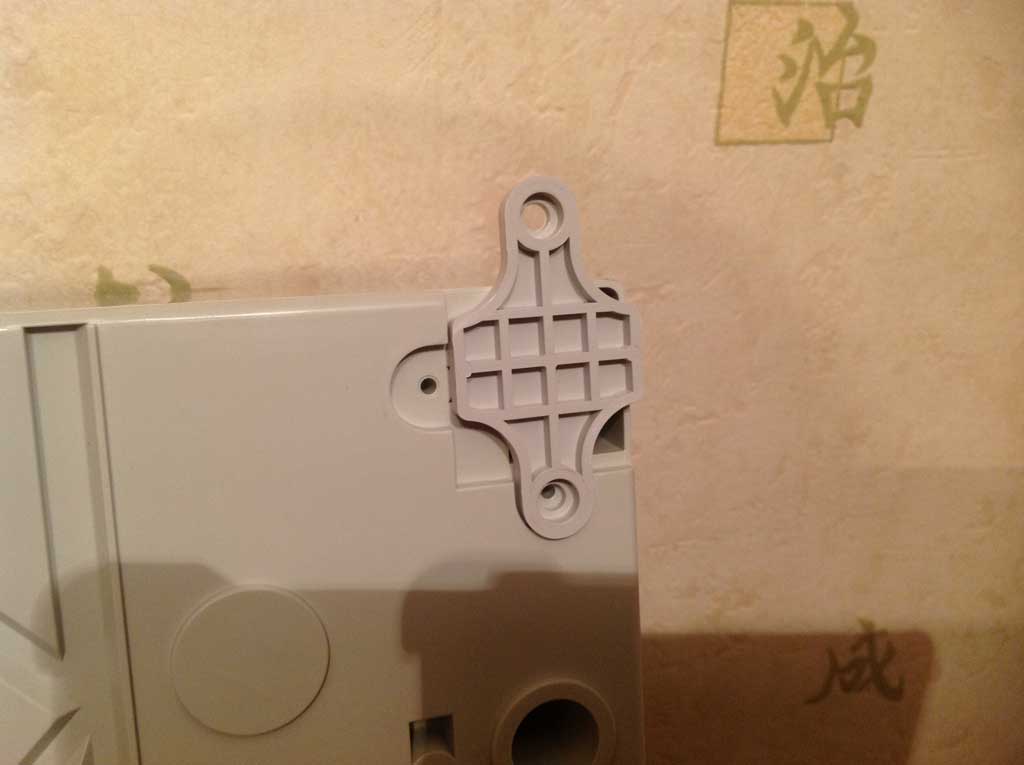 Для крепления шкафа имеются специальные "ушки" или же можно прикрепить щит непосредственно через дно - там есть специальная разметка для этого. После эти отверстия можно закрыть прилагаемыми пробками-заглушками.