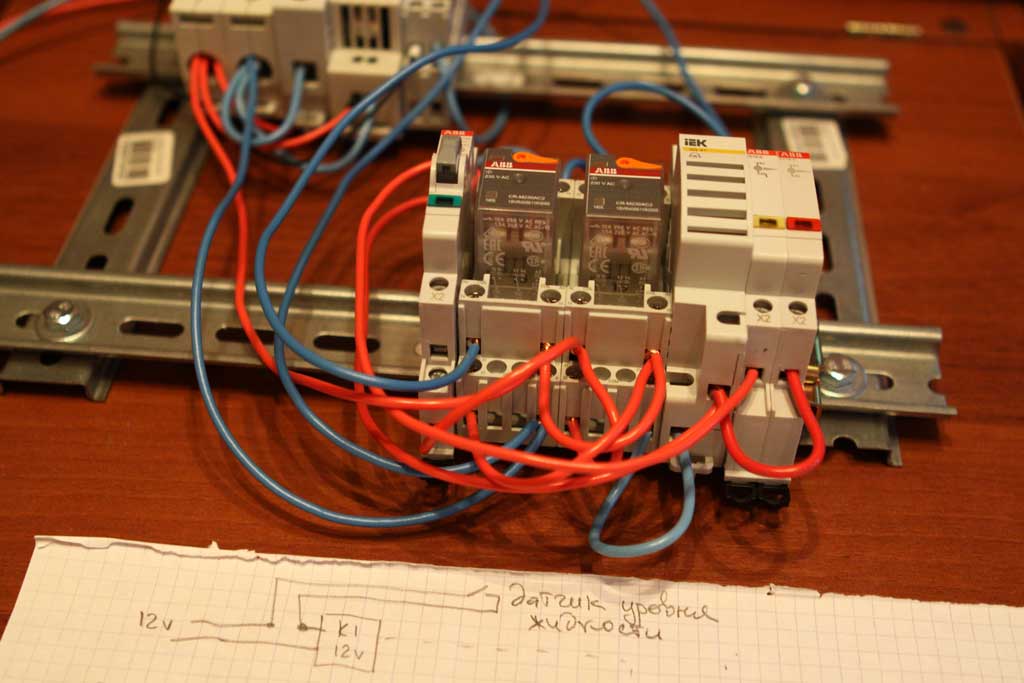 Сам датчик уровня жидкости я включил последовательно в цепь питания реле.