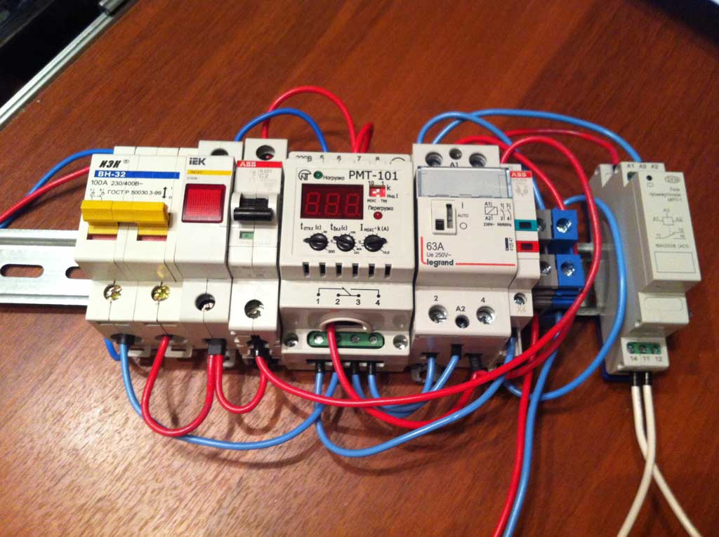 Сам контактор Legrand 412547 управляется переключающимися контактами реле максимального тока РМТ-101.