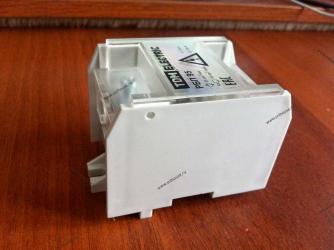 В отличии от "старшего брата" у него отсутствует выемка по центру верхней прижимной пластины и крепление к дин рейке осуществляется жестко - этот блок практически надо "натягивать" на дин рейку с самого ее торца.
